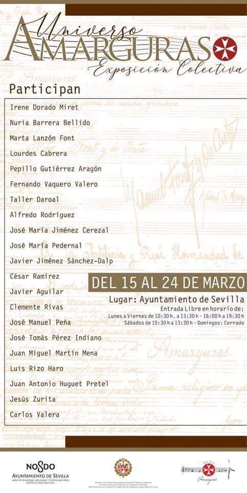 La exposición colectiva ‘Universo Amarguras’, bajo la coordinación de Fernando Vaquero, expondrán obras originales creadas para esta muestra con una temática común: la Hermandad de la Amargura y todo su universo plástico y artístico.